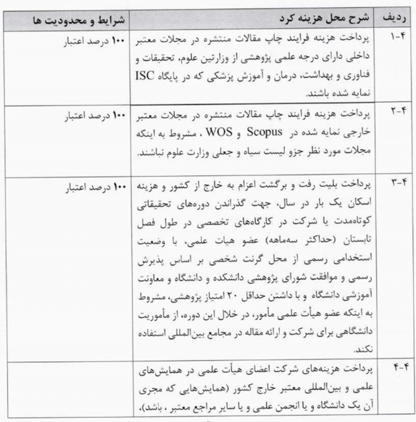 3. محل هزینه‌کرد گرنت این افراد باید مربوط به فعالیت‌های پژوهشی باشد که منتهی به دستاورد پژوهشی به نام دانشگاه هرمزگان می‌شود یا خواهد شد.