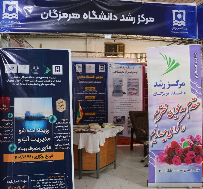 این نمایشگاه در هفته پژوهش و فناوری  از تاریخ 12 لغایت 18 آذرماه در محل مجتمع آموزشی و پژوهشی پردیس 2 دانشگاه با حضور حجت الاسلام والمسلمین عبادی زاده نماینده ولی فقیه در استان و امام جمعه بندرعباس ، احسان کامرانی معاون سیاسی ، امنیتی و اجتماعی استانداری هرمزگان ، آشوری و مرادی نمایندگان مردم حوزه انتخابیه مرکز استان در مجلس شورای اسلامی ، جمعی از مدیران کل دستگاه های اجرایی و فعالان حوزه پژوهش بیست و سومین نمایشگاه دستاوردهای پژوهشی استان افتتاح شد.مرکز رشد دانشگاه نیز با برپایی غرفه و ارائه دستاوردهای واحدهای فناور در این نمایشگاه شرکت نمود.