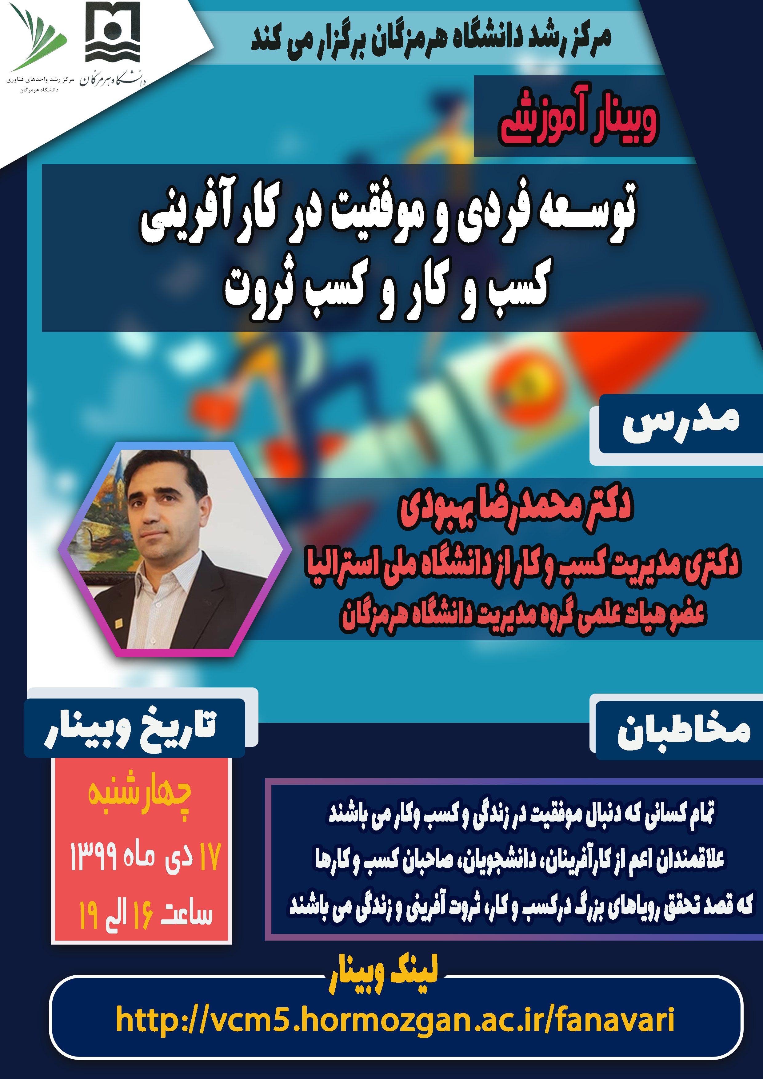 این وبینار از طریق سامانه مجازی دانشگاه هرمزگان در دی ماه 1399 برگزار گردید.