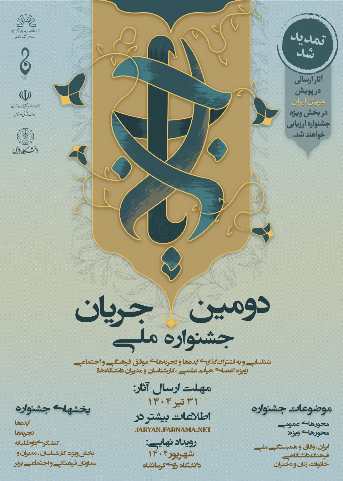 فراخوان شرکت در دومین دوره جشنواره ملی «جریان» تمدید شد؛ ویژه اعضای هیات علمی و یاوران علمی