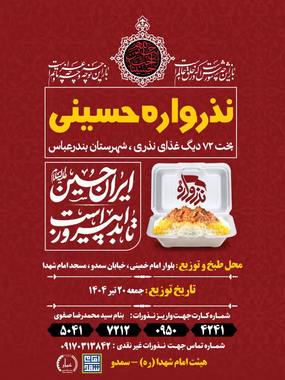 هیئت امام شهدا (ره) با همکاری گروه جهادی عمار وابسته به بسیج دانشجویی دانشگاه هرمزگان برگزار می‌نماید: