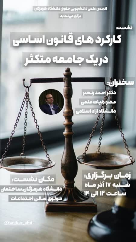 انجمن علمی دانشجویی گروه حقوق دانشگاه هرمزگان برگزار می‌نماید: