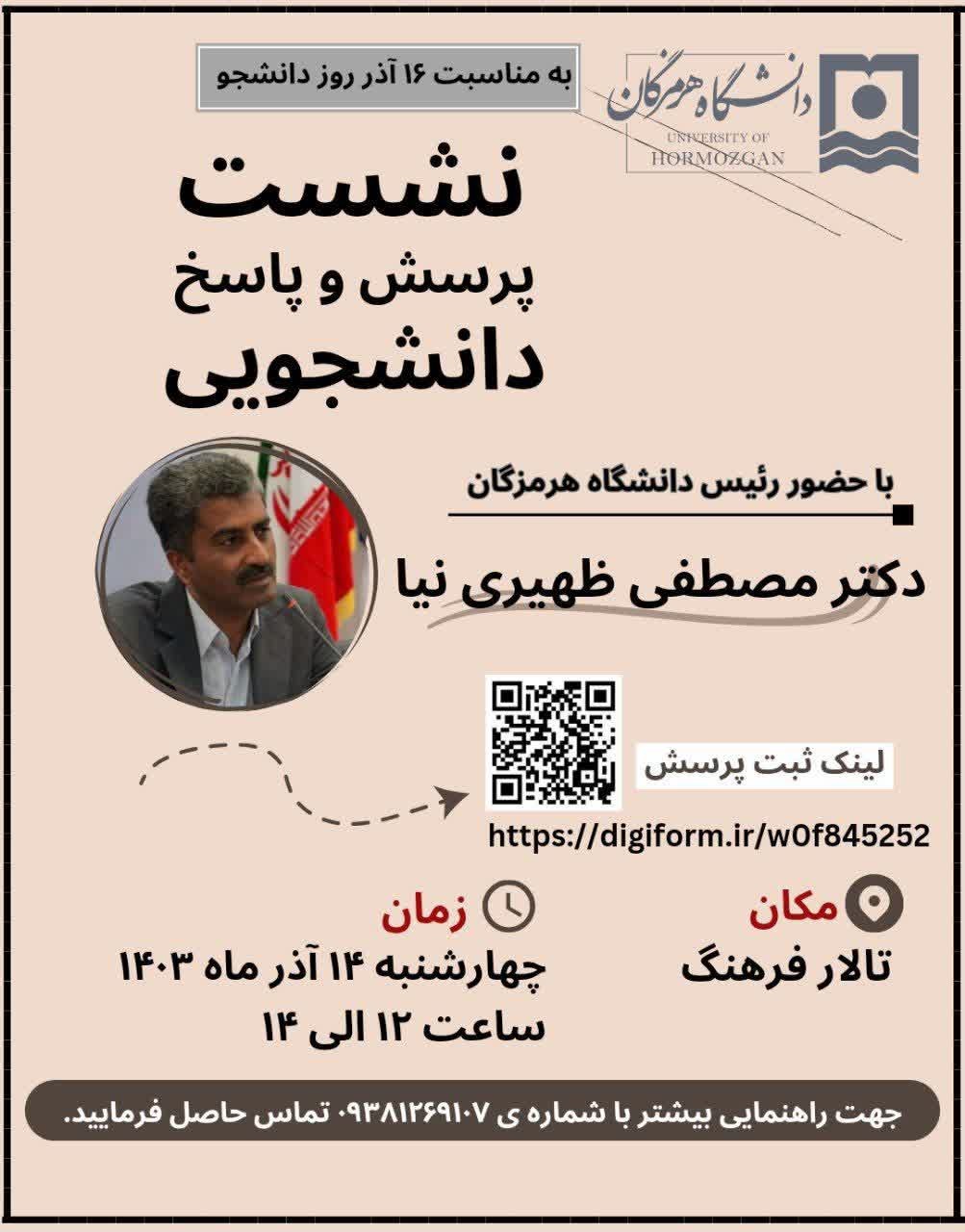 دعوت جهت شرکت در نشست پرسش و پاسخ دانشجویی با هیات رئیسه دانشگاه هرمزگان