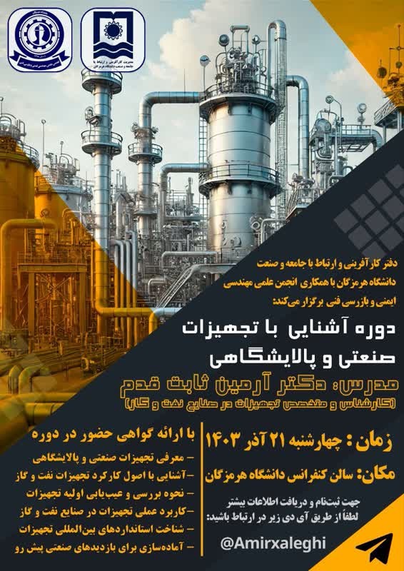 فراخوان شرکت در کارگاه آموزشی دوره آشنایی با تجهیزات صنعتی و پالایشگاهی