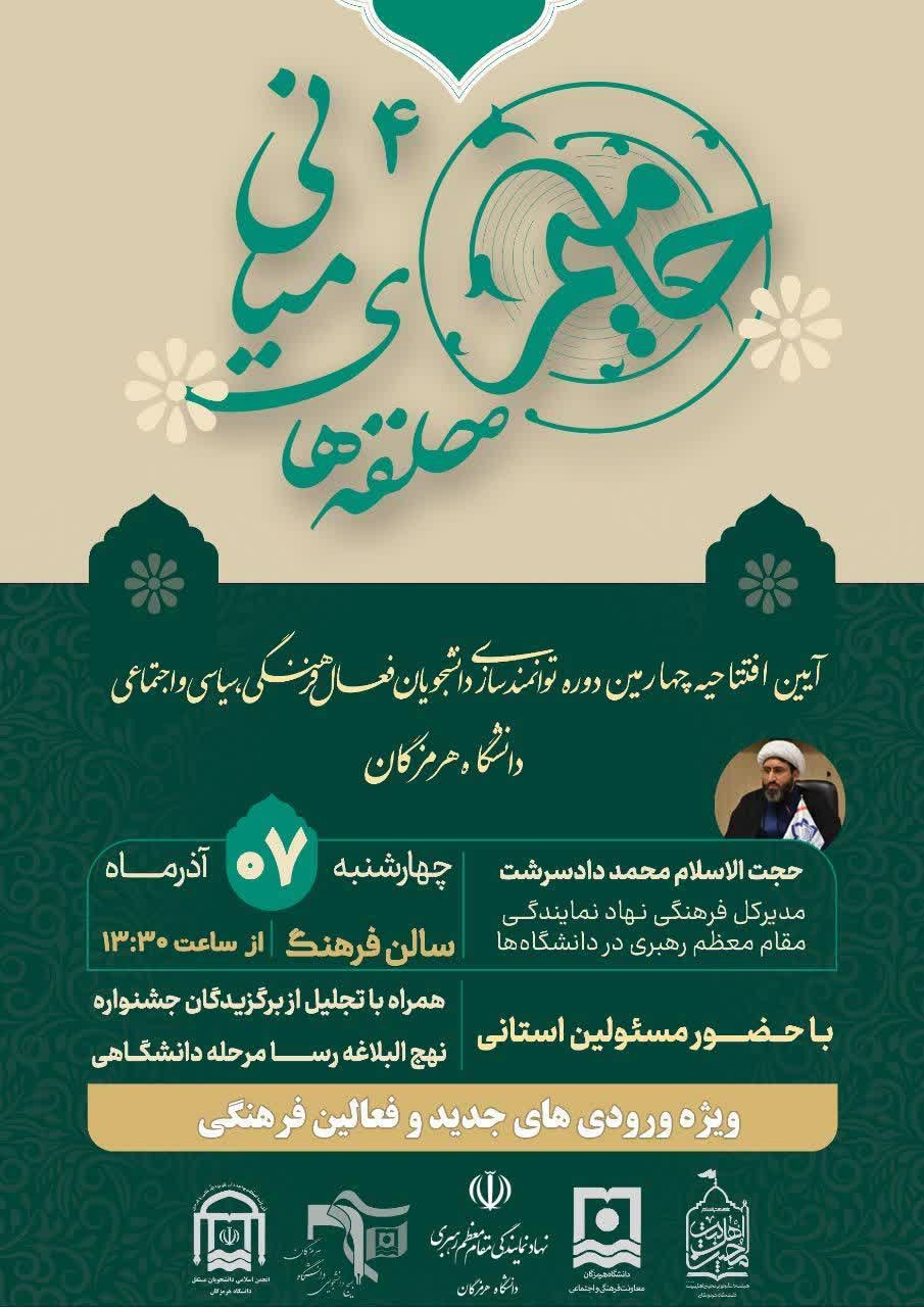 دعوت به حضور در آیین افتتاحیه چهارمین دوره توانمندسازی دانشجویان فعال فرهنگی، سیاسی و اجتماعی دانشگاه هرمزگان: حامیم 4