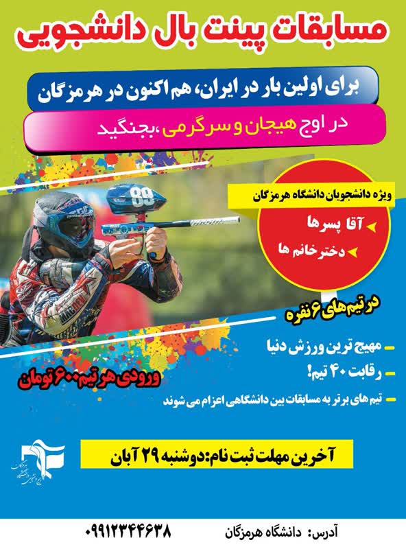 مسابقات پینت بال دانشجویی برای اولین بار ، هم اکنون در دانشگاه هرمزگان