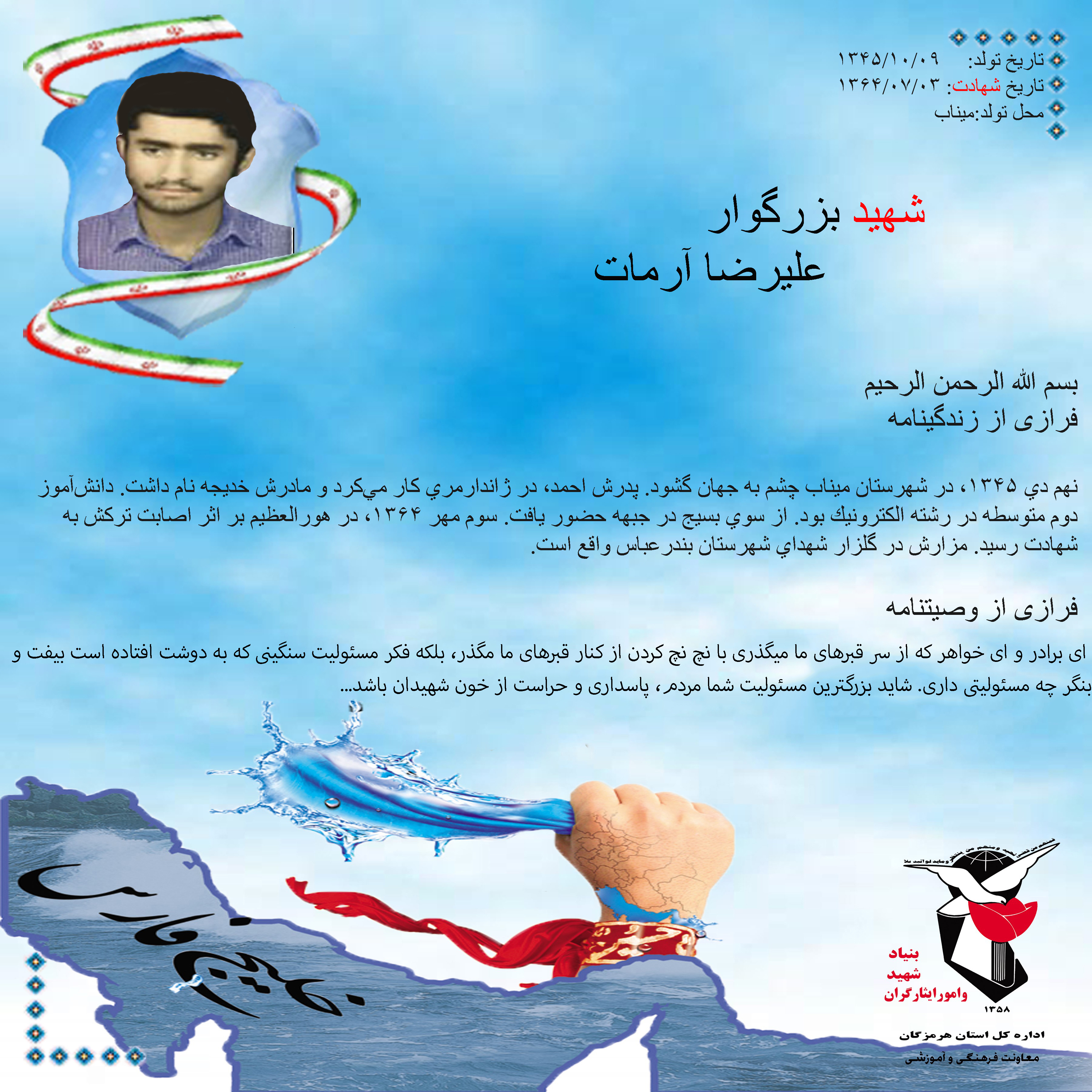 فرازی از زندگینامه و وصیتنامه شهید بزرگوار علیرضا آرمات
