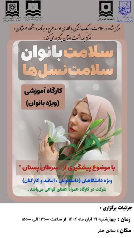 مرکز مشاوره،سلامت و سبک زندگی با همکاری اداره طرح و برنامه دانشگاه هرمزگان برگزار می کند.