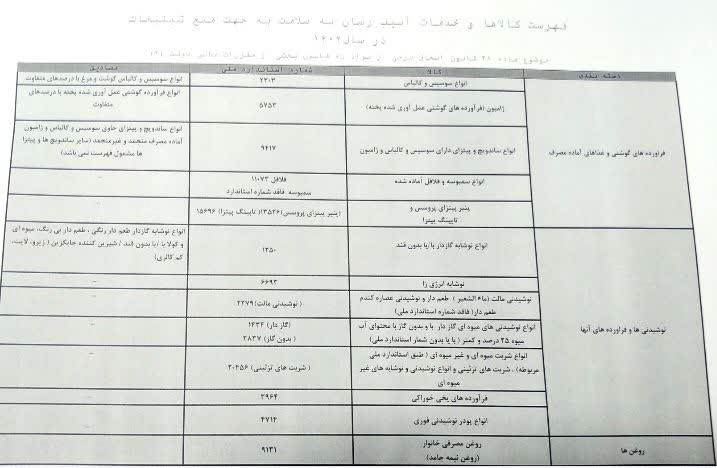 فهرست کالاها و خدمات آسیب رسان به سلامت، جهت منع تبلیغات