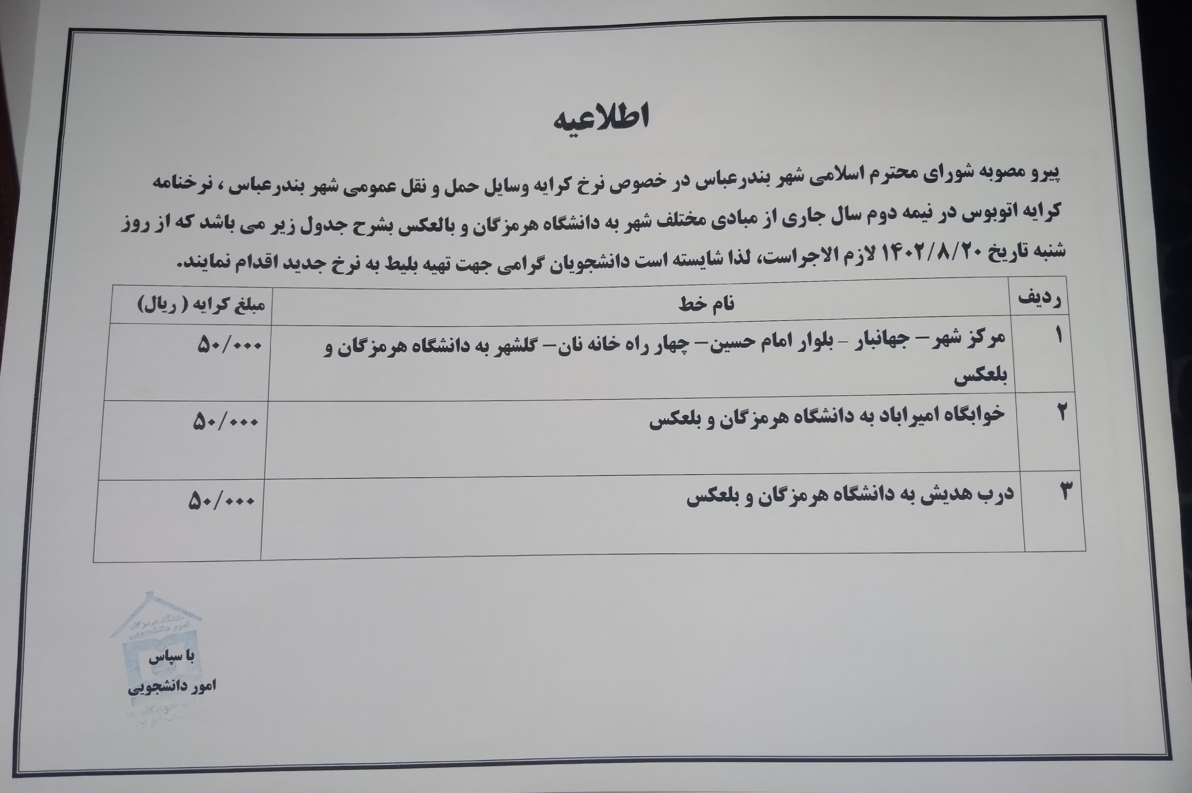 نرخ نامه جدید کرایه اتوبوس های دانشجویی